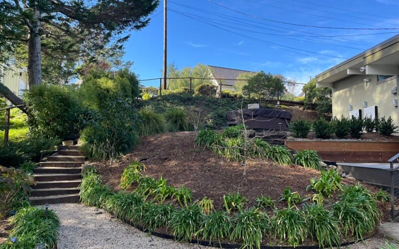 My house is a mid-century modern, which I bought in 2012 and did a complete remodel on. At that time, I was teaching the “Fire in Marin” class, a free two-hour seminar for Marin residents that I created and taught in conjunction with local fire agencies. I’d also completed my Marin Master Gardener training and had just founded its Aesthetic Pruning Guild, now in its 14th year. These were the three knowledge bases I drew upon in designing the garden of my new home.