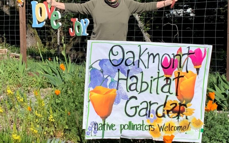 The front of the house is dominated by a huge heritage Coast Live Oak (Quercus agrifolia). Enter through the east side gate and you will soon be in a beautiful habitat garden. Birds, bees and butterflies abound. The pipevine swallowtail is the main butterfly, but the anise swallowtail is often seen nectaring on the Erysimum ‘Bowles Mauve’. Anna’s hummingbirds and the little titmouse are attracted by the feeders that I put out for them.